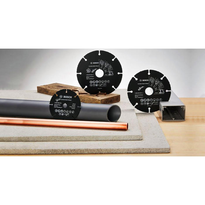• Más rápido: la calidad excepcional de los granos de carburo de tungsteno garantizan una velocidad de corte 2 veces mayor al disco diamantado MultiConstruction Bosch