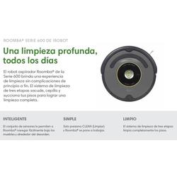 • La Roomba® 622 cuenta con un proceso de limpieza patentado de 3 etapas con cepillos de giro inverso y un poderoso aspirador para eliminar de tus pisos el polvo, la suciedad, el pelo y otros residuos