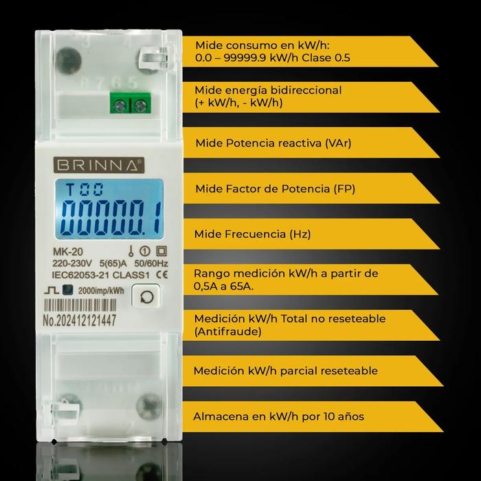• Este Multimedidor monofásico con registro está diseñado para medir la energía activa monofásica (kWh) y otras magnitudes eléctricas en CA