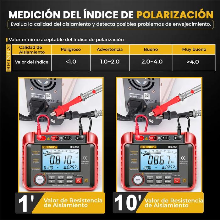 • El probador de resistencia de aislamiento Brinna HB-360 es un instrumento especial para medir la resistencia de aislamiento