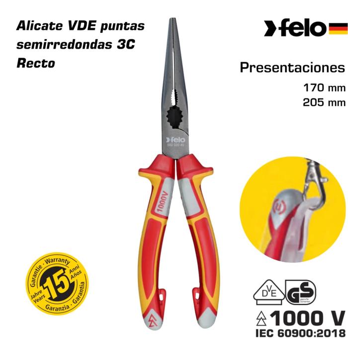 • ¡No comprometas la calidad en tus herramientas! Al elegir los Alicates combinados VDE 3C Felo, estás invirtiendo en un producto de alta gama que cumple con los estándares más exigentes